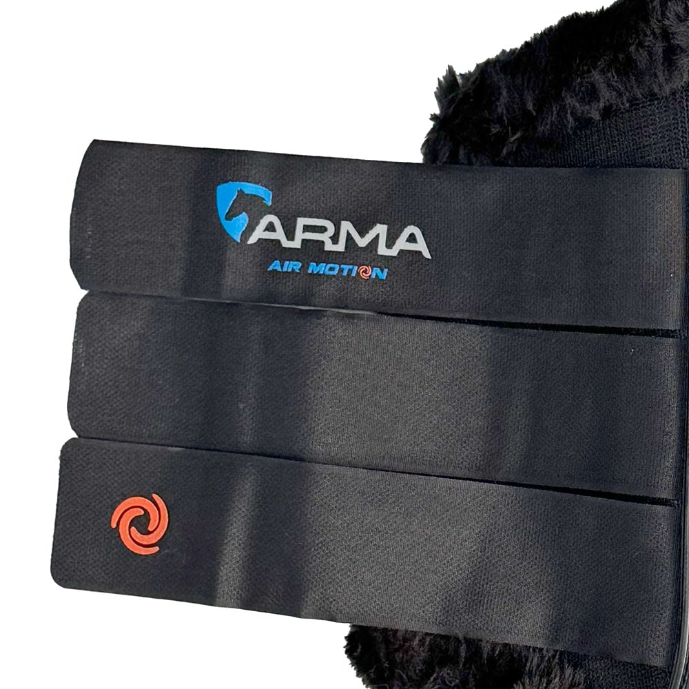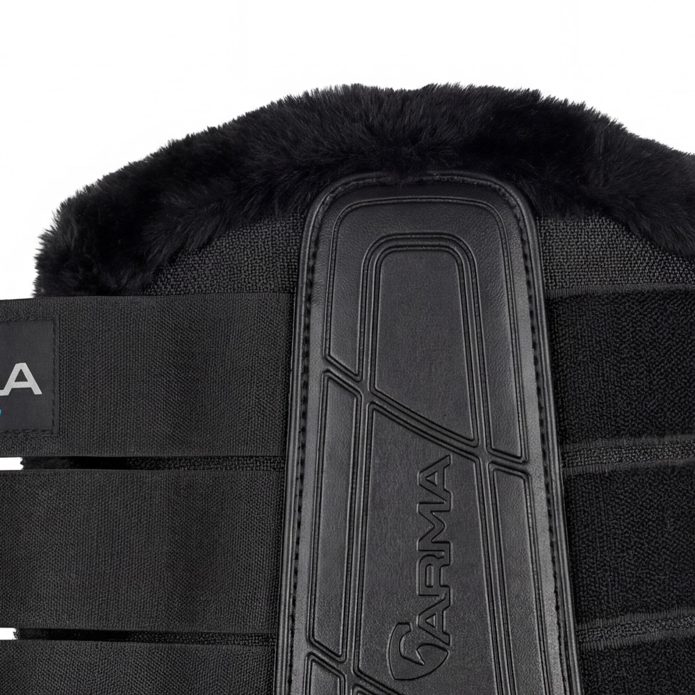 上下の縁には上質なスーパーフリースがトリムされ、洗練された見た目と心地よい着け心地を両立しています。タッチクローズのベルクロ式で、簡単に装着できてフィット感を調節。安定した装着感でズレにくく、日常の練習から馬場競技の準備運動まで幅広く使えます。