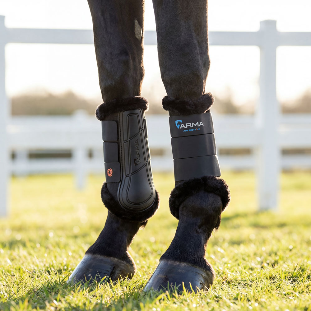 ふんわりとしたクッション性のある耐圧縮性サポートと内側の耐衝撃パッドが衝撃から馬の脚をしっかりと守ります。
