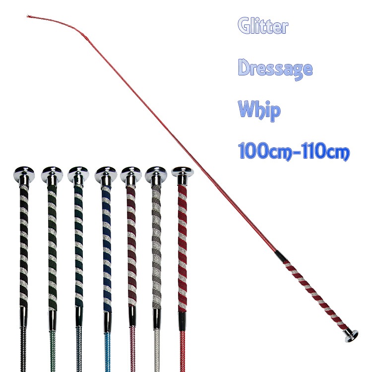 ※日本馬術連盟の規程に則った馬場馬術競技会では、競技場内(練習馬場)で使用できる長鞭は先端ラッシュ部分を含めた全長120cm以内のものとなります。なお、アリーナ(競技用馬場)では鞭の携帯は禁止です。