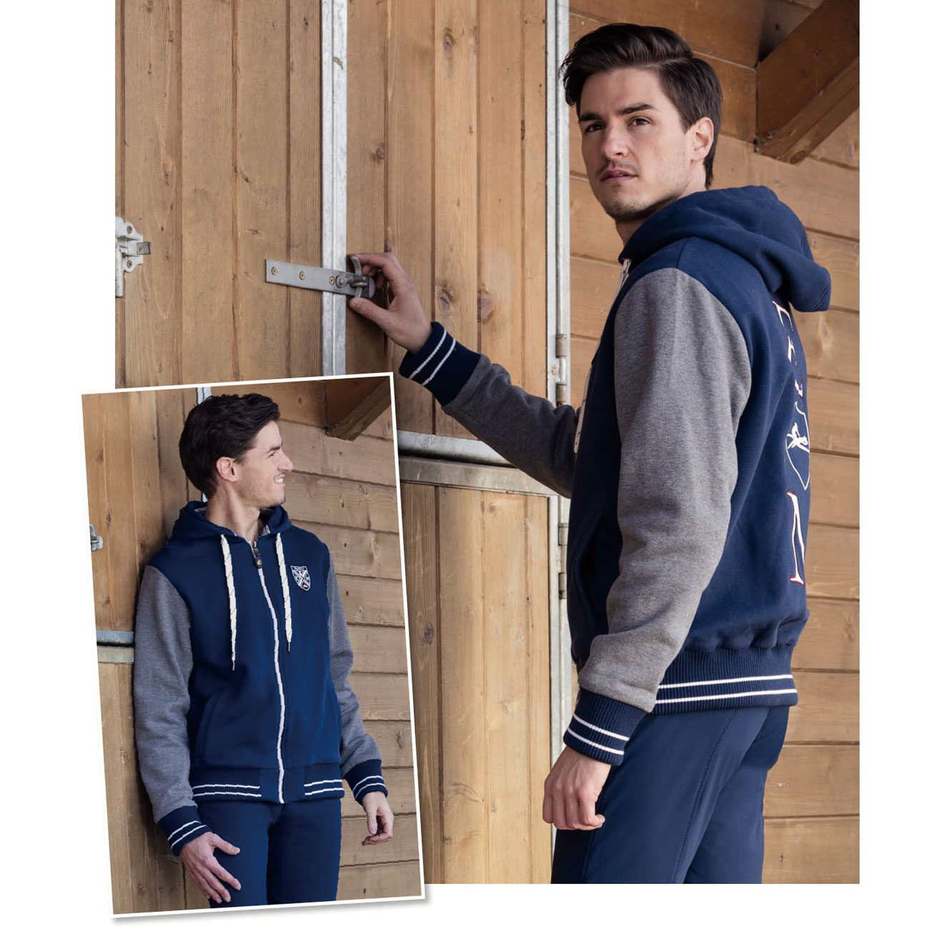 スタイリッシュさと温かさを兼ね備えたメンズフーディージャケット。肌触りの良い高品質なメルトン生地の裏地に柔らかなフリースがライニングされているのでしっかりとした保温性があり、寒い日でも快適に過ごすことができます。袖口と裾にストライプリブの付いたスポーティーなデザインはキュロットとの相性も抜群。胸のワッペン、背中の大きなフォームプリントが目を引くポイントです。