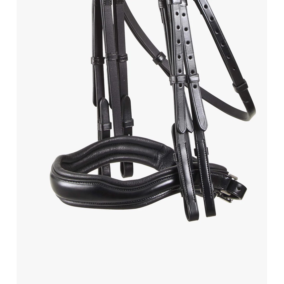 解剖学的にデザインされたパッド入り項革は馬の耳から圧力を避けつつ感受性の低い部分に力を分散し、快適な着用感を実現します。