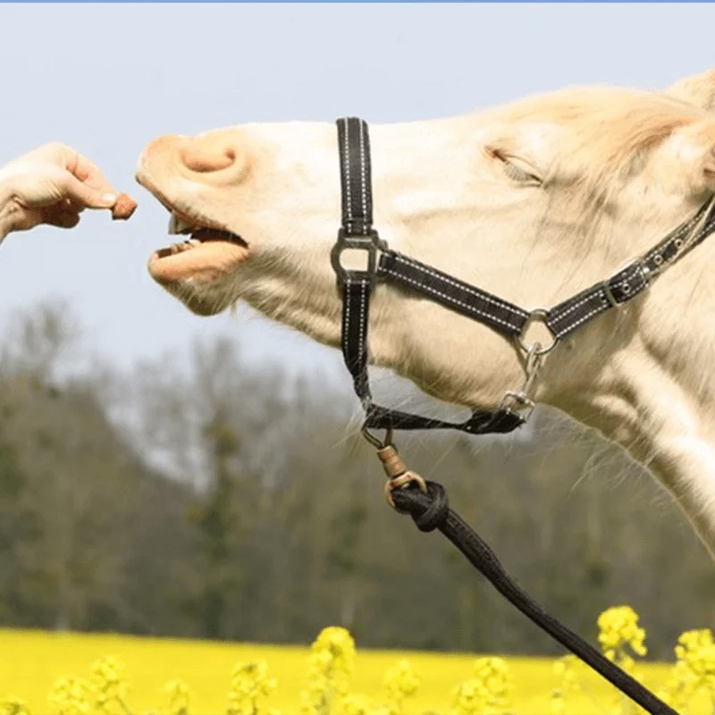 りんごとワイルドフルーツの2つのフレーバーが楽しめる、栄養価の高い馬用トリーツです。甘い香りとかわいい星形とハート形の形状で、トレーニングや日々のコミュニケーションタイムを楽しく彩ります。